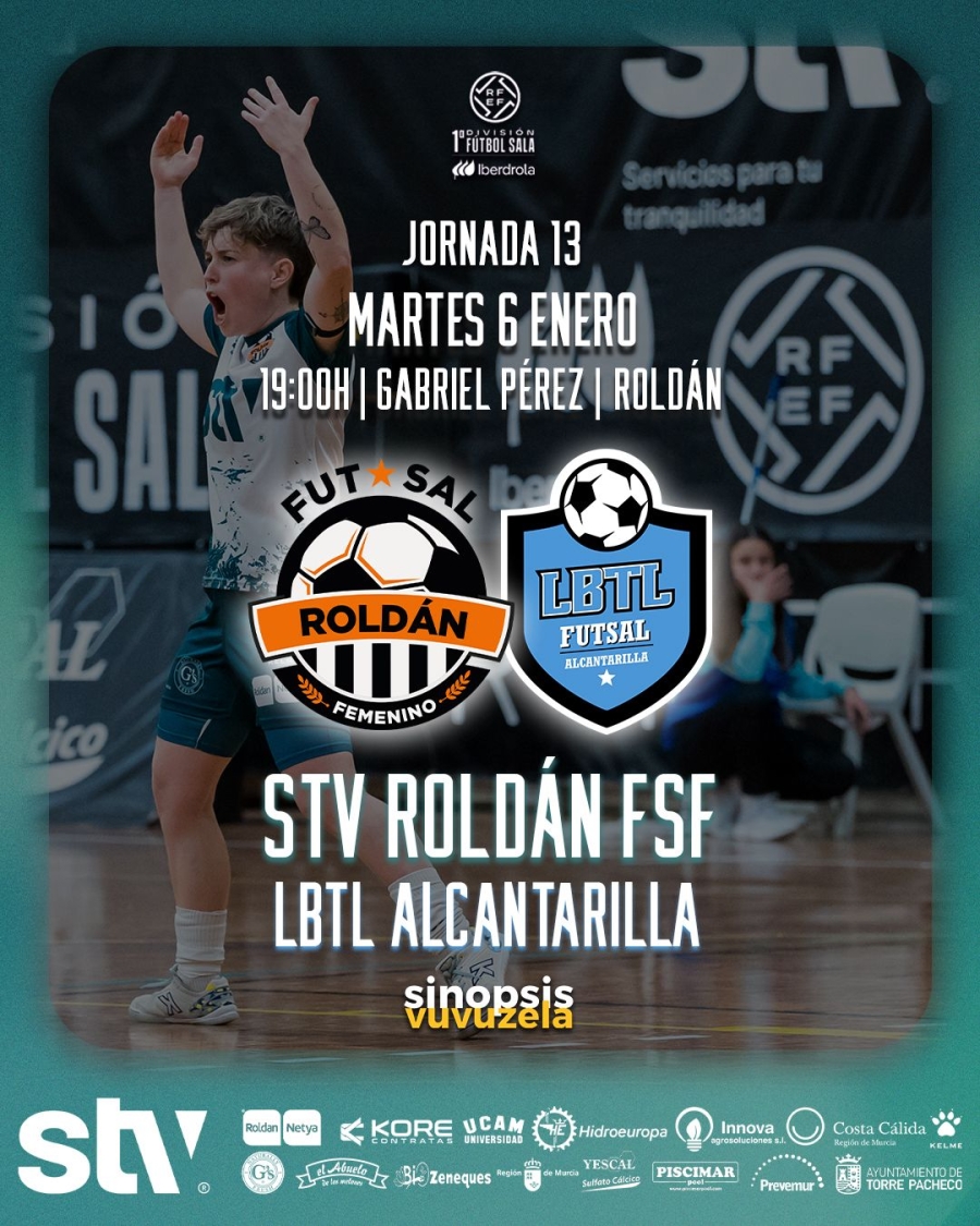 El derbi regional vuelve un año más al Gabriel Pérez. El STV Roldán y LBTL Alcantarilla se cruzan en el primer partido de 2026 en la pista de la Marea Naranja. El último precedente del encuentro fue en la final de la Copa Presidente, título que levantó el equipo dirigido por Joaquín Peñaranda. Tras hacer los deberes ante el Les Corts, las pachequeras llegan al derbi en segunda posición pese a las numerosas bajas que por lesión tienen actualmente. De las bajas obligadas por lesión, Kilian recupera a la yeclana Alba Gandía, pero continúan en la enfermería Mayte Mateo, Carmen, Eva González y Ángela Gorriz. Sin estas jugadoras, el cuadro local tendrá que recibir a un Alcantarilla que aterriza tras empatar ante el Penya Esplugues en casa, próximo rival del STV este sábado a partir de las 16:00. El equipo dirigido por Joaquín Peñaranda se sitúa en sexta posición con 18 puntos en plena pelea por los puestos de ‘playoff’ que marca el Futsi Navalcarnero con 23 puntos. El partido se podrá seguir a partir de las 19:00 a través de Live Vuvuzela y en los canales oficiales de la RFEF.