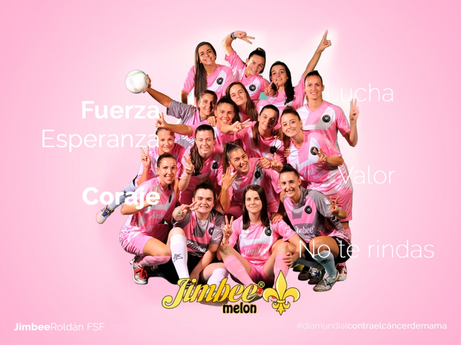 El Jimbee Roldán, como cada temporada, trata de aportar su granito de arena en un día tan señalado para la mujer como este, con la celebración del “Día mundial del Cáncer de Mama” y tratándose de un Club femenino, es una obligación que tenemos contraída con la sociedad el luchar por reivindicar desde nuestra modesta posición ciertas campañas que por género afectan prácticamente solo a la población femenina. Este año, volvemos a hacer una foto en la que tratamos de transmitir toda la positividad del mundo en la lucha contra esta enfermedad, pero no solo en la lucha, porque como estos años pasados pudimos observar desde el interior de nuestra plantilla, la enfermedad se diagnostica, se sufre, se padece, se cura y siempre con un espíritu de superwoman; hemos entendido que de la enfermedad hay que aprender, hay que desde el segundo uno saber que se supera y que nuestra sociedad está repleta de ejemplos que nos enseñan el camino . Por eso, una bonita foto con la V de “victoria“ contra la enfermedad, de “victoria” con la integración por la normalidad desde el segundo uno en la sociedad, y de “victoria” por cada una de esas campeonas que padecen esta enfermedad. También con motivo de estas fechas, en nuestro próximo partido en casa el Sábado 28 de Octubre a las 12 horas y retransmitido en directo por 7 Tv Región de Murcia ante CDVP Soto Del Real, realizaremos la entrega de una de nuestras equipaciones de “lucha contra el cáncer” a una mujer que ha sido referente en la lucha contra esta enfermedad y que además ha sabido normalizarla y ayudar a que muchas mujeres la imitasen y que sobre todo se liberasen de este “tabu” de la enfermedad. Ese mismo día, lucirá en nuestro pabellón un lazo gigante de globos rosas de más de 6 metros de altura que presidirá el partido. Se le entregarán globos rosas a cada uno de los asistentes al encuentro y a las señoras se les entregará un pañuelo rosa para la cabeza para apoyar de esa forma a todas las mujeres que pierden el cabello en el duro tratamiento que sufren por esta enfermedad. Por supuesto que nuestro equipo jugará con la equipación rosa que se observa en la fotografía estas dos próximas semanas. También en la mañana de la celebración del partido en casa y en colaboración con la AECC de Murcia se celebrarán unas charlas coloquio donde intervendrán Oncólogos de Servicio Murciano de Salud, Técnicos Municipales del Ayuntamiento de Torre Pacheco e invitadas que relatarán sus casos concretos sobre esta enfermedad.