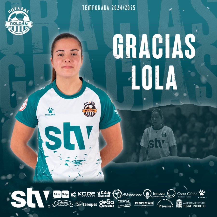 Aterrizó Lola en Roldán en julio de 2019 tras la conquista de la Champions del conjunto pachequero con la ilusión de ser una jugadora importante en aquel entonces para el equipo dirigido por Andrea, pero la realidad de este deporte le ha negado la oportunidad de poder serlo, y no es por otra razón que la que la joven jugadora que aún ni ha cumplido 22 años ha estado dos temporadas enteras lesionada sin posibilidad de disfrutar de este deporte y de hacer también disfrutar del mismo a la afición del Gabriel Pérez de Roldán. Ahora, y tras cuatro temporadas, Club y jugadora separan sus caminos sin haber podido exprimir esta etapa como merecían ambas partes, el club le desea suerte en su nueva etapa.