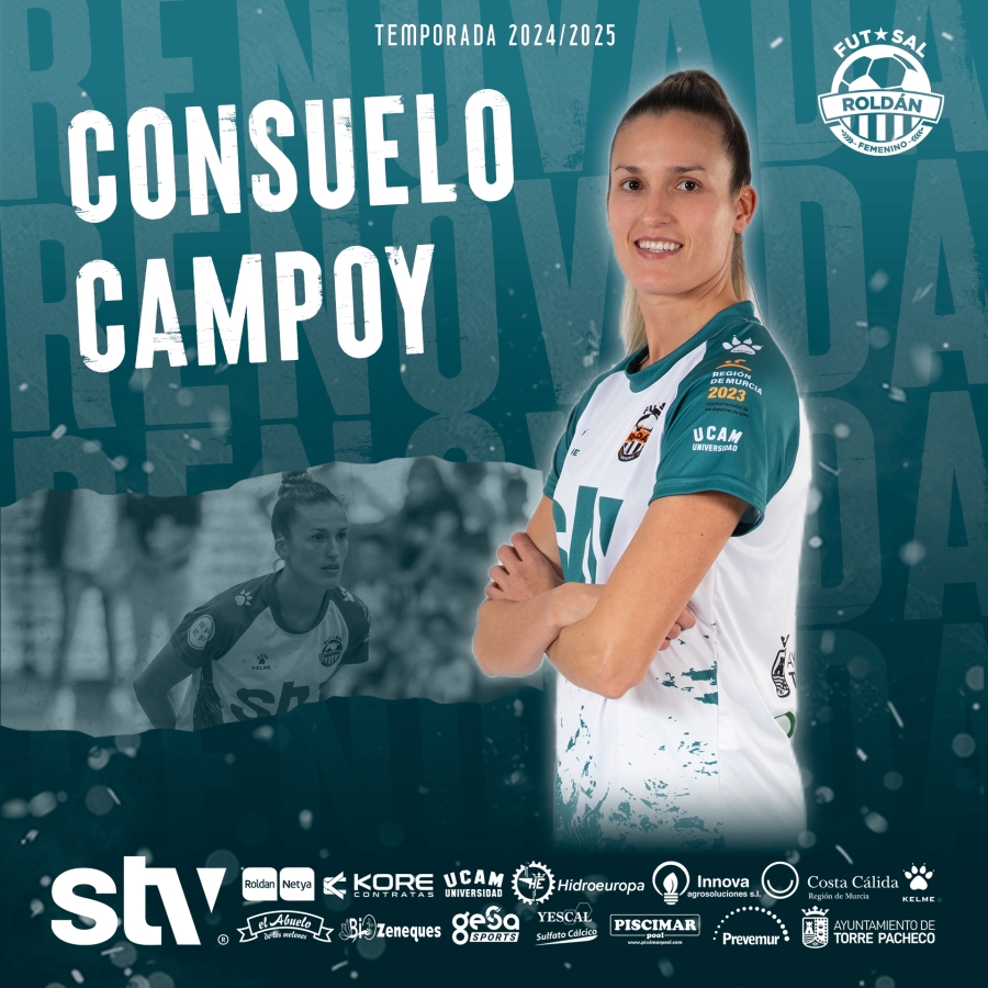 La murciana natural de Molina de Segura Consuelo Campoy a sus 30 años y en plena madurez deportiva, renueva con el club murciano para jugar la próxima temporada en el Gabriel Pérez lo que supondrá ya su novena campaña como local en la catedral. Tras desarrollar su inicio de carrera deportiva en UCAM El Pozo llegó hace 10 años, y cursar con el equipo de Roldán una primera etapa en la que conseguía Liga y Champions, salió del Club para jugar una temporada en la UA para volver a recalar de nuevo ante la afición de la marea naranja, siendo una de las jugadoras más respetadas por la afición por su entrega en cada partido. Con su madurez el STV se asegura que sobre la pista siempre haya una buena dosis de tranquilidad y buen hacer que debe contagiar a las jugadoras más jóvenes que tiene la plantilla entrenada por Kilian Belmonte.
